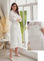 Sofisticada falda a media pierna, con una ligera abertura a los lados, y que lleva unos cortes simétricos adelante y atrás, con detalle de flecos, lo cual hacen un diseño único y muy vanguardista. La tela es muy suave al tacto.