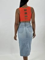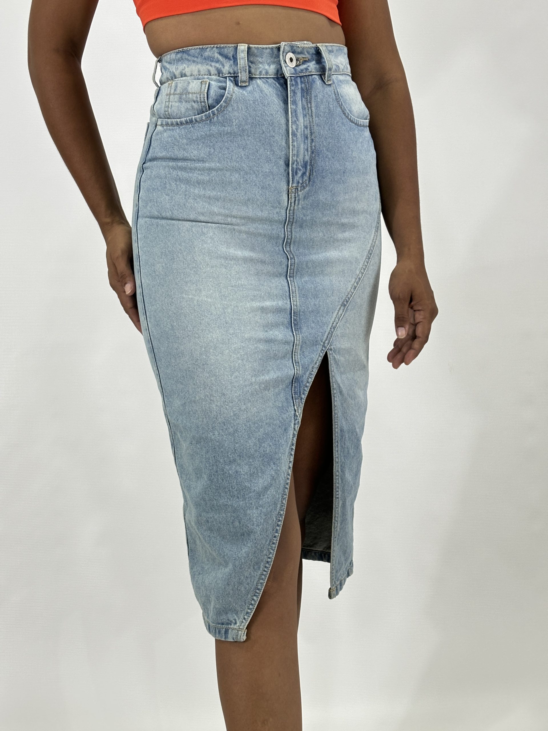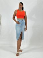 Falda midi con abertura frontal que añade un toque de sensualidad y sofisticación, esta falda es la elección perfecta para destacar en cualquier ocasión. Su versatilidad te permite crear looks casuales.
