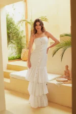 VESTIDO LARGO TIRAS BLANCO LINO Y OJALILLO